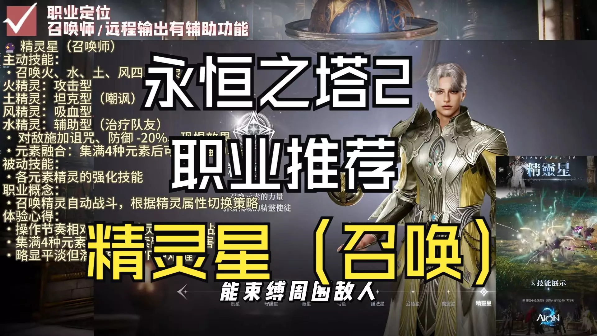本文介绍《永恒之塔2》里半DPS半召唤的法师职业精灵星,将为大家带来该职业的技能效果一览,帮助玩家了解精灵星的技能情况。