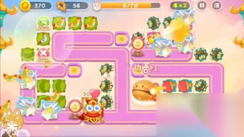 ·第五步开始右上角会出现仙女兔,仙女兔需要利用到双锁头的技巧也就是暂停的时候先锁定一下仙女兔,然后再去锁定木鱼。这样就是可以既让右上角的弓箭去打到仙女兔又可以让球拍去锁定木鱼。如果听不懂就直接锁定仙女兔就行了,也是一样的,最多也就是因为少锁定了木鱼,导致木丸可能会稍微少一点。第二只仙女兔也是一样的暂停,然后锁定仙女兔再锁定中鱼。 ·像这种血量比较多的兔子最好还是可以提前点去解决掉,不要到时候搞得很危险。 今后期无伤特别难,基本上都要漏怪,漏怪才常态,所以大家漏个几只非常正常事情。如果大家追求稳定,其实只要右上角出现仙女免就锁定一下。 ·这一波是比较难,这一波会漏这个粉老六,大家最好是注意一下,提前点去锁定,最后可以搬个家,这样还能再多打出一个念珠,就是92分结局。