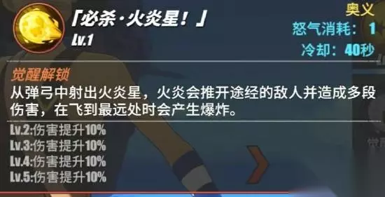 乌索普加速向轮盘指定方向进行位移,轮盘滑动的地方就是乌索普所跑到的地方,这个期间乌索普的移动速度会大幅度提升,并且我们会对跑到的地方释放钉刺,第1次会在场上,持续一段时间,敌方踩到钉子以后会受到持续性的伤害 这个技能比较适合大面积的扩散领地范围,而且这个技能所撒出去的钉刺是可以叠加的,就比如我们在一个地方连续撒出钉刺,敌方站在上面,会受到所有钉刺对他造成的伤害 这个技能就比较适合在我方快被敌方贴近的时候使用这个技能的加速逃离战场了 奥义:必杀·火炎星