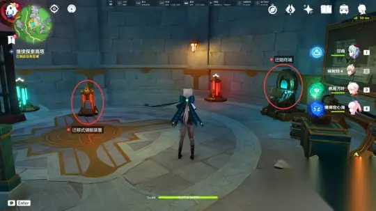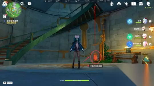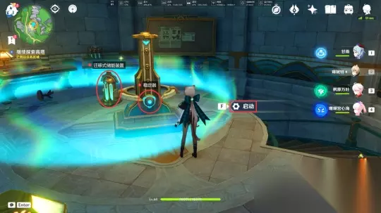 接下来,我们再次带上“迁移式储能装置”前往四楼,在这里将其放置在“稳定器”旁边,然后选择“启动”选项。当圆环以蓝色亮起,进入检查区间范围内时,按下按钮即可完成操作。
