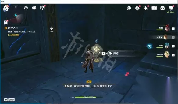 打开大门后,沿着唯一的路一直走,一直走到一个需要打开的机关处,使用月浴渊之钥开启大门。