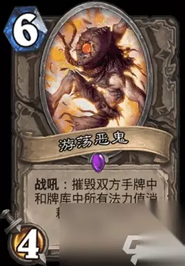 而游荡恶鬼就是用来压缩牌库,快速启动机械克苏恩OTK,由于卡组中除了6张组件牌之外全是1费法术。所以用过棱彩透镜之后便可以下恶鬼,将卡组和手牌里的一费法术全部撕掉。(注意,恶鬼撕得都是卡牌原本的费用,所以棱镜变的10费法术也能撕掉)