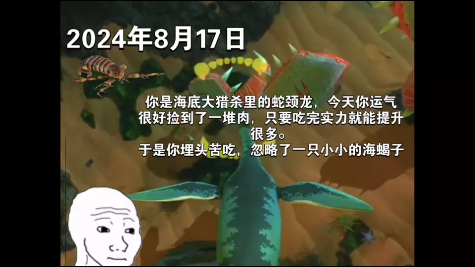 这是《海底大猎杀》的游戏内容分享,展示了在生存模式中选择海蝎子进行游玩的过程,即便没有经验倍数加成,海蝎子也能通过捕食等操作顺利升级,实力强劲。