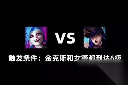3、女警vs金克斯 触发条件:双方英雄升级到六级 女警获胜方式:在W技能夹子困住金克斯的5秒内参与击败她。 胜利奖励:女警团队每次击败敌人后,在其脚下生成一个女警W夹子。 金克斯获胜方式:在E技能夹子困住女警的5秒内参与击败她。 胜利奖励:金克斯团队每次击败敌人后,在其脚下生成一个猴子炸弹。