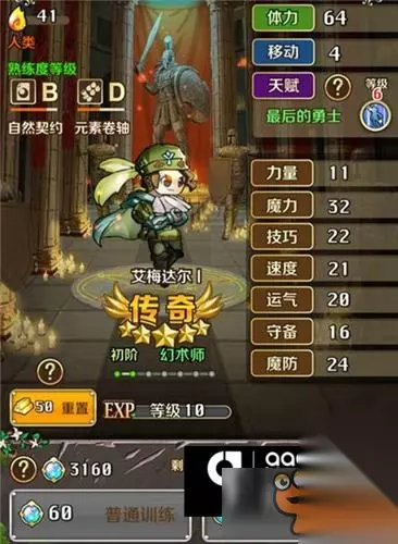 敌人法师是11级的传奇英雄艾克萨罗斯,并且全套配上了昂贵的盔甲、鞋子和饰品,属性远远高于我的所有英雄,高达30点的法力和36的物防威慑下,我的四星战士巴德几乎不敢出手;这种情况下,我的英雄艾梅达尔所使用的契约类武器正好克制了对方的英雄艾克萨罗斯所使用的卷轴类武器,并且通过亲密度支援的加成,3个英雄的围攻下击杀了艾克萨罗斯! 下方是敌方的队长13级斯布雷斯,两次攻击可以击杀我的任何英雄,这种情况下,只能通过回血待机的方式慢慢地用我的英雄艾梅达尔将其磨死。 契约勇士之中的战斗,电脑的AI并不算强,只要通过各个诱敌击破的策略几乎可以轻松打通所有关卡! 3.人物培养 角色方面,优先进行传奇五星角色的重点培养,其次是四星角色,然后是三星能够和五星形成支援关系的角色! 上图英雄,康妮是艾梅达尔和徳琳娜结婚所生的女儿,初始属性并不出色,但通过洗点,将其力量洗到了6点,魔力洗到了25点,并且有不错的技巧、运气和魔防,由于能和艾梅达尔形成魔力加成的支援,并且升职后能够使用辅助性极强的书类武器,所以和艾梅达尔配合会非常出色! 关于属性点洗点,有几个要注意的地方! 物理输出角色加力量,魔法输出角色加魔力,输出角色最重要的属性就是力量、魔力;有的角色,既能物理输出,又能魔法输出,想要重点培养的话一定要有所牺牲,要么重物理,要么重魔法! 仅次于力量和魔力的属性是守备和魔防,肉盾角色要重点洗这两个属性,而输出型炮塔也要有适量的守备和魔防! 接下来就是要保证适量的速度,速度过低很容易被敌方高速度英雄追击,而高速度能够提高追击的概率! 技巧影响命中,运气影响闪避、暴击、反暴击率,这两者对于角色来说不需要太过苛求,保持适量即可。 值得一提的是,契约勇士之中,升级的节奏非常地慢,刷怪练级提升极慢,强化升级消耗极高,想要培养一个高等级角色,需要耐心积累。 4.总结及小技巧 契约勇士在数值方面非常忠于火纹系统,人物的每一点属性提升都非常的重要,培养独特的超强角色是这个游戏的特有乐趣之一。 游戏之中的竞技场系统,非常影响玩家的角色培养节奏,限于前期团队等级低,战意上限值低,玩家在竞技场之中又必须上场六个英雄,所以1星2星英雄必须拉上去凑数,建议新手玩家前期不要过分纠结于竞技场,等待团队等级更高,战意上限更高后,有一个较为成型的六人队伍再来挑战竞技场!(前期想要挑战竞技场可以使用田忌赛马的策略,用两个白版1星输给对方的两个核心主力,剩下的四个分别以强对弱即可) 下面列出一下游戏之中比较行之有效的小技巧: 使用友情点可以招募大量的1~3星角色,三星角色集齐四个一样的后可以在暗影祭坛分解,一二星主要用于给主力英雄进行强化,在这之前可以将这些1~3星角色的装备全部放入库存,可以留着给其它角色使用或者卖出; 队伍上限可以适当用金砖购买,保持在45个为佳; 道具库存上限也可以适当用金砖购买,保持在120个为佳; 有任务就接,任务积分不够就多发布任务,任务积分足够多了的时候为了节省银币就尽量少发布任务,缺少爱情信物、升职道具合成材料多发布抢夺任务获得; 培养一个盗贼和一个修女,可以节省很多购买宝箱钥匙和回复药水所花的银币; 金砖尽量用来购买体力,银币,千万不要大量用来招募英雄,最佳招募方式是幸运值积累满后进行一次金砖招募; 高级武器、装备、饰品、砖石由于有耐久度限制,前期不要苛求,推图使用D级武器就能满足所需,后期打竞技场时再来打造高级装备。 如转载涉及版权等问题,请作者与我司联系,我司将在第一时间删除或支付稿酬。