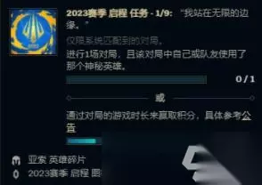 《英雄联盟》2023赛季启程任务神秘英雄猜测方法攻略 活动时间:2023年1月12日-2月8日 神秘英雄此处指的不是任务赠送的英雄碎片所对应的英雄,而是任务说明中英雄台词所对应的英雄。 “我站在无限的边缘”-泽拉斯