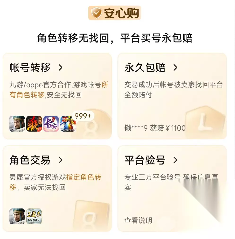 在账号交易的安全性上,交易猫平台也能为大家提供充足的保障。想必有过账号交易经验的小伙伴,可能或多或少遇到过这样的情况:那就是自己好不容易攒下了一笔资金想要购买某个喜欢的游戏账号,在精心挑选之后就直接下了单,在满心欢喜收到商家发来的游戏账号后就迫不及待的登录账号查看,结果发现账号中的内容与购买时页面所展示的内容差别很大,也就是俗称的货不对版的情况。这个时候就是非常典型的遇到了被骗单的问题,如果大家选择的是一些小众的平台,那么后续维权的操作就会变得非常的麻烦,而且难以推进。可如果大家使用的是交易猫平台,就能够通过官方推出的安心购系列服务功能中快速的维权然后挽回自己的经济损失。