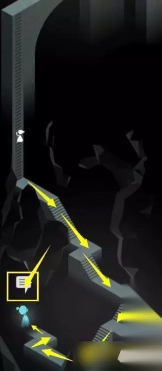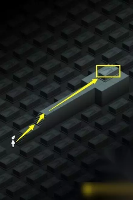 39、一直向下走楼梯,直到走到暗处的黑色小方块开关的位置,第四个小黑块处的位置会上升一段距离。