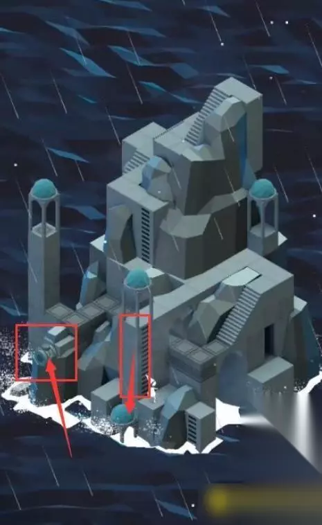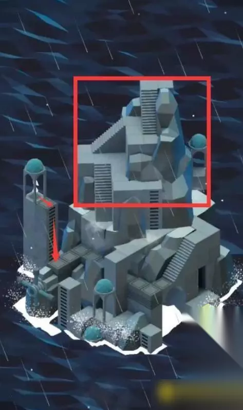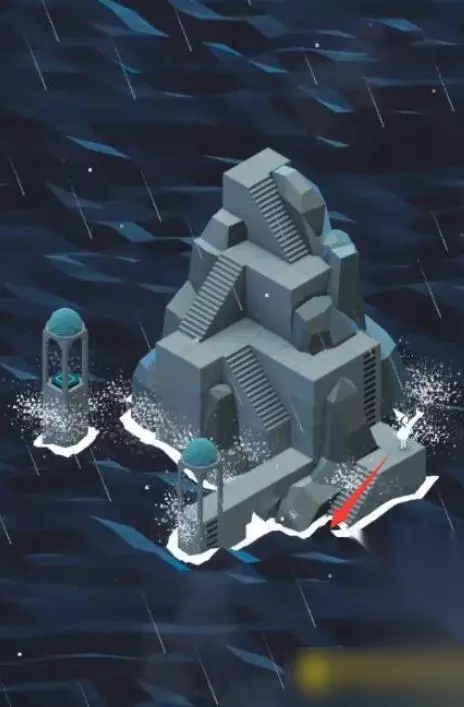 15、然后小岛建筑颜色会变亮了,图腾也出现了,通过楼梯上面的路往前走,再左走到无路的位置。