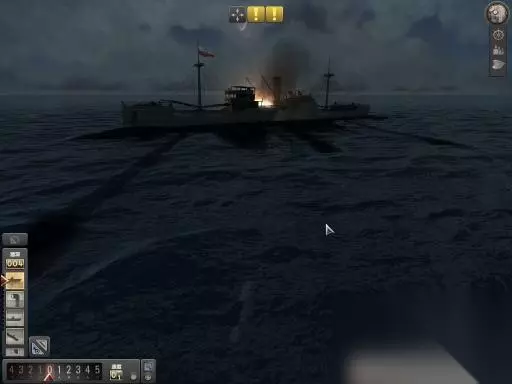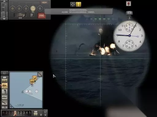 如上图,虽然游戏提示要发射全部4枚鱼雷,但只要3枚就足够搞定。然后就会出现航速,潜深等控制面板