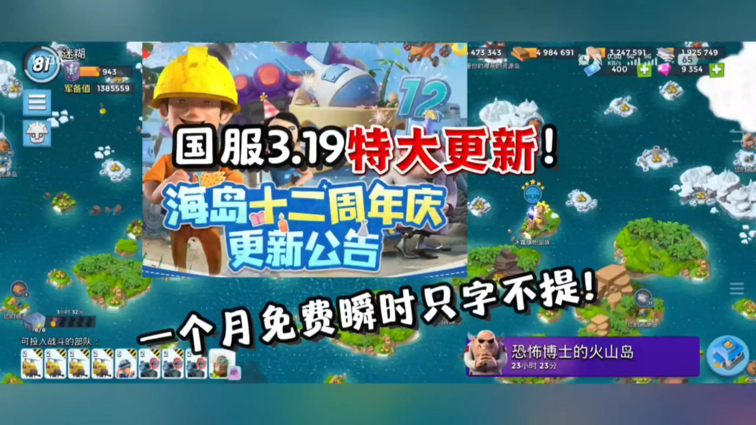 这是策略游戏《海岛奇兵》的游戏界面展示帖,帖主发起对海岛奇兵国服更新的看法讨论,界面呈现了高等级玩家的海岛基地布局,还有相关游戏代练、收出号的相关服务信息。