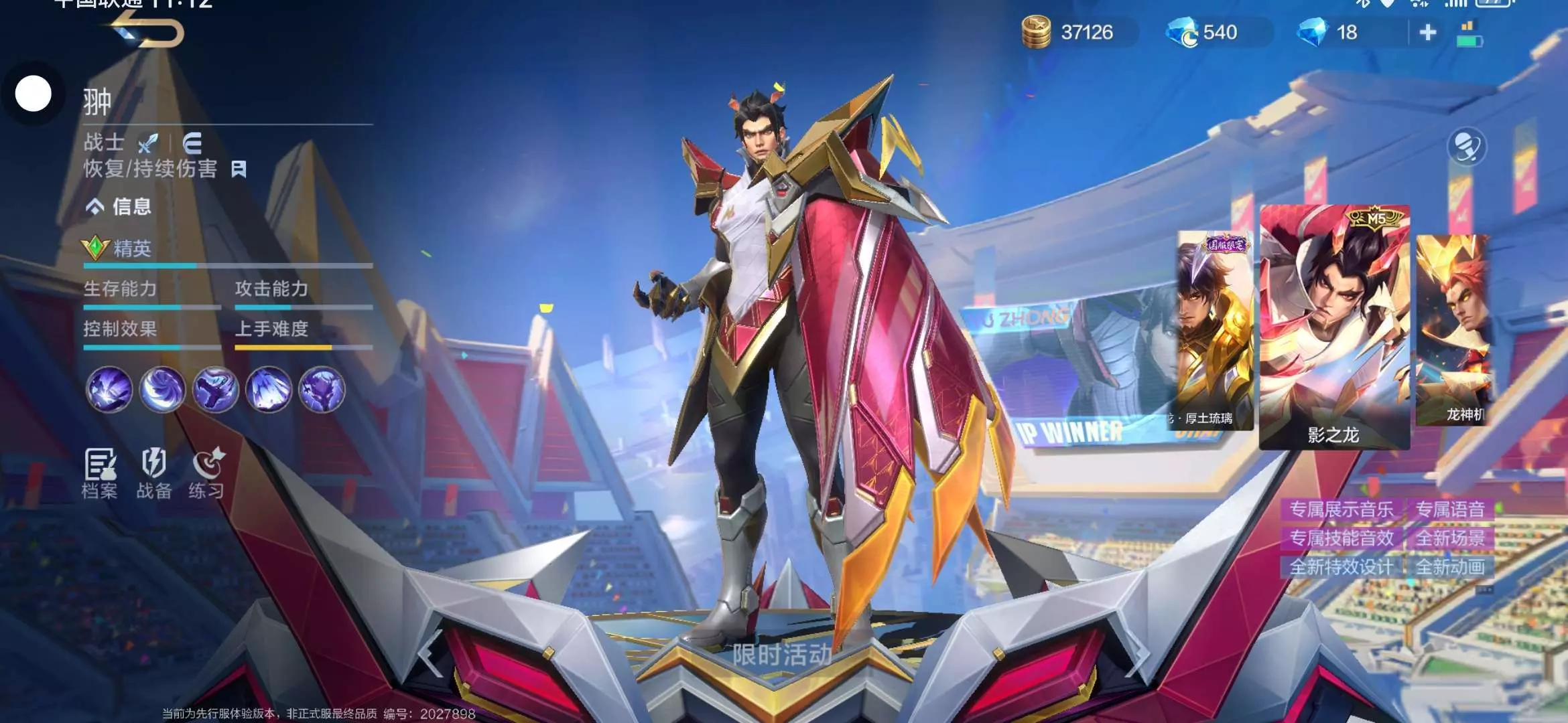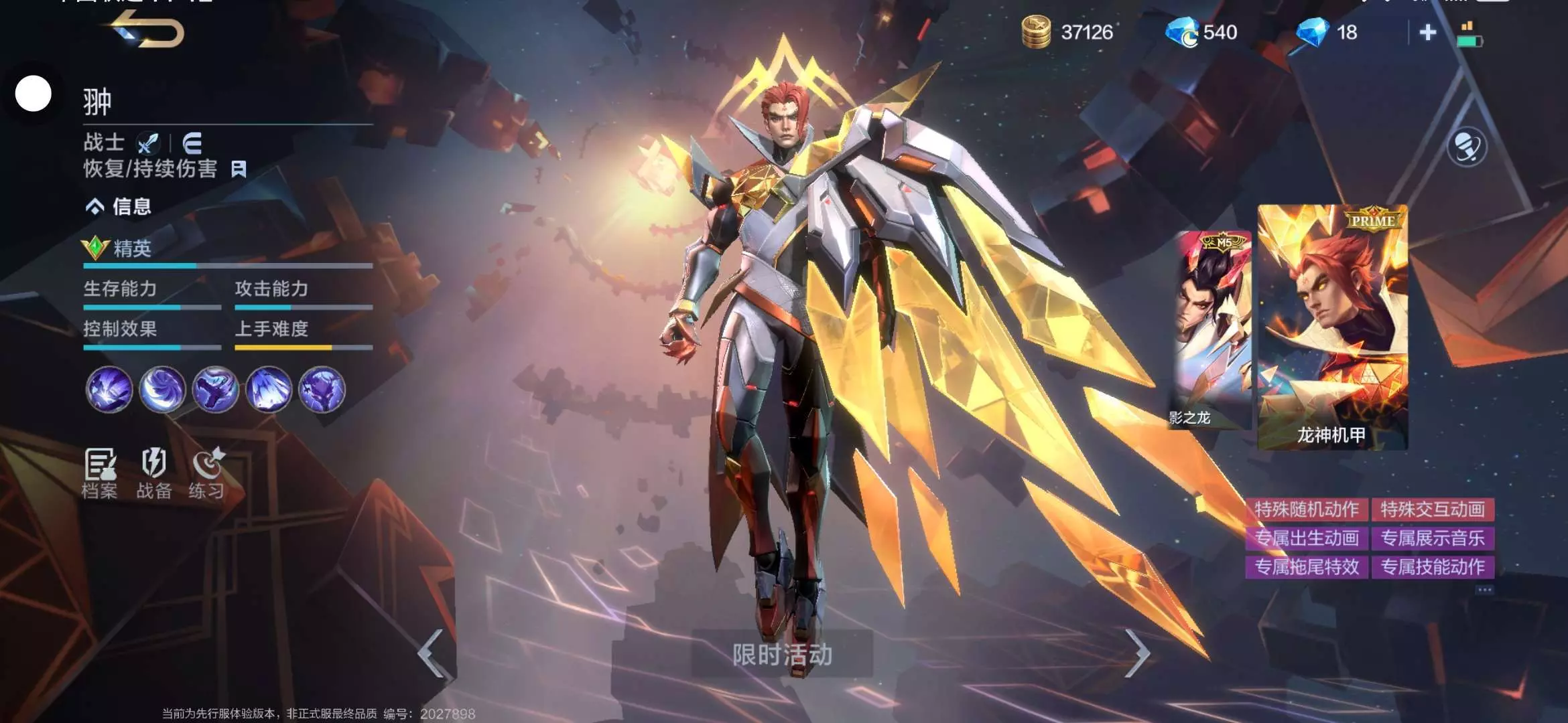 抽奖池之中会有翀的M5赛事皮肤影之龙,还有他的M5典藏皮肤龙神机甲 ,以下是图片