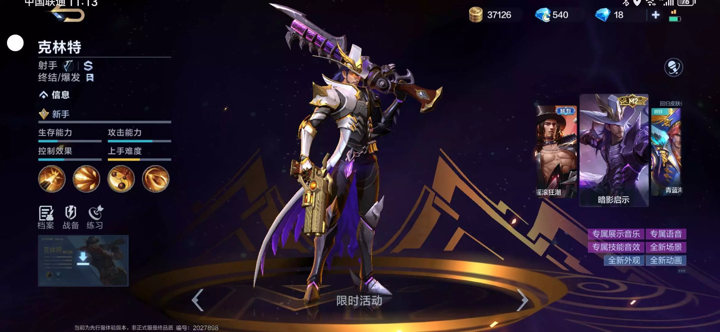 第二个是克林特的M2赛事皮肤暗夜启示(还是史诗品质)