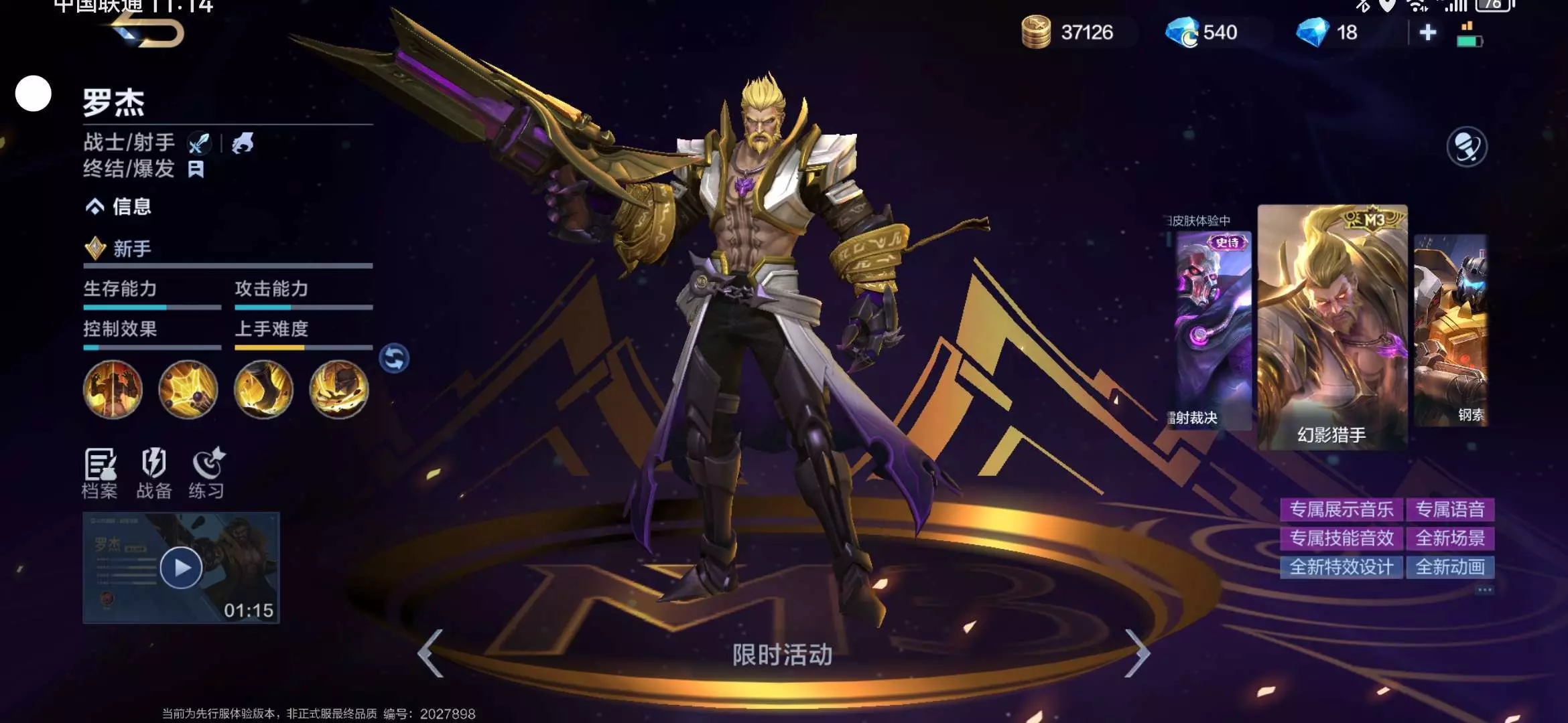 第三个是罗杰的m3赛事皮肤幻影猎手(其实除了那个龙神机甲,其他都是史诗品质的,所以这还是个史诗ヽ(゜▽゜ )-C<(/;◇;)/~[拖走])