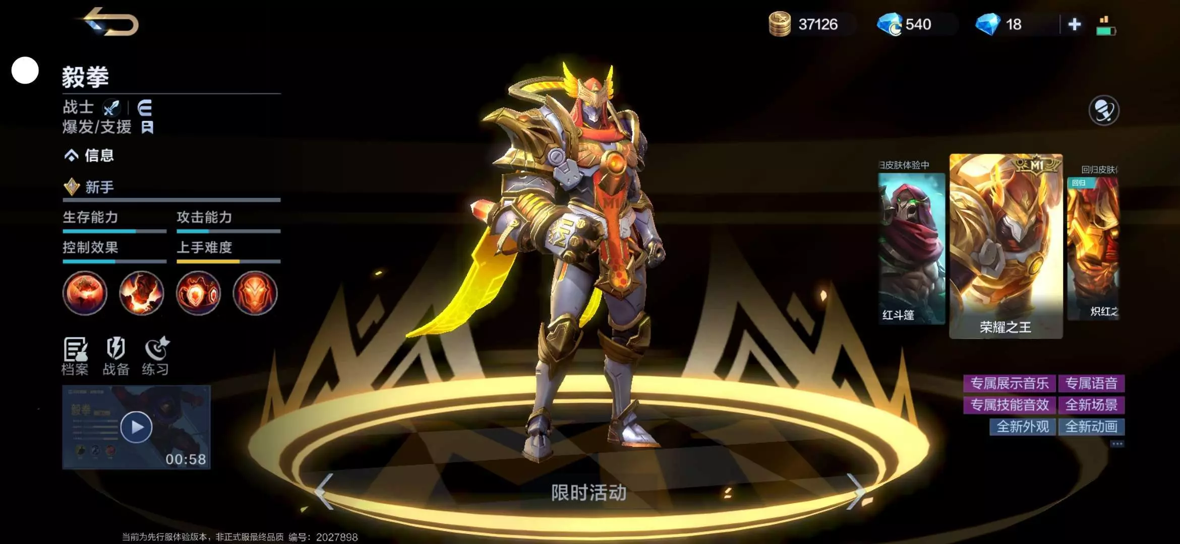 其中有一个免费送的皮肤,是金迦的耀日凌空皮肤,是精品品质