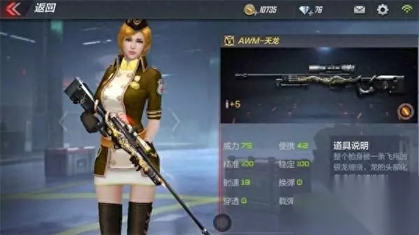 PS:使用黄金AWM-A参战经验值增加100%、金币值增加50%。 根据上述信息,我们可以看出:黄金AWM-A在精度和稳定数据上达到了满级,这就意味着黄金AWM-A准心高、后坐力低,适合每一位具有狙击天赋的小伙伴操控。 枪击伤害