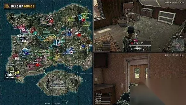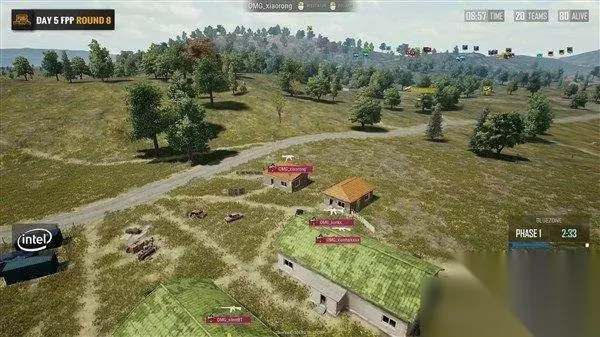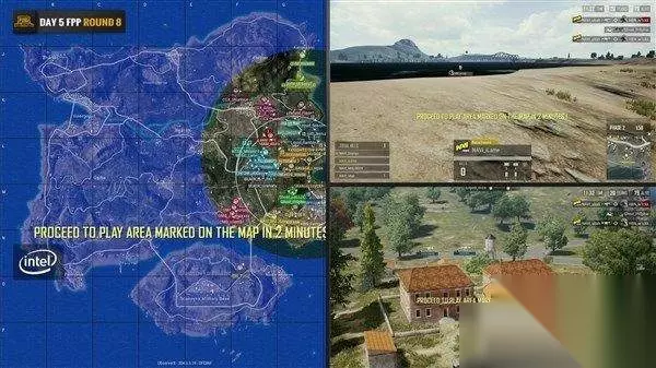 9分左右,OMG选择了圈的难免拦路打劫,4AM则选择向北占据圈边制高点。