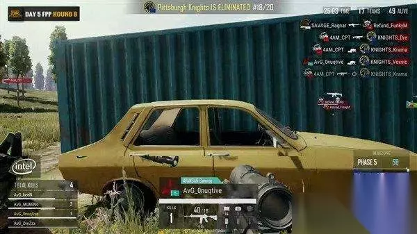 25分03秒,小醒目苟进圈之后,偷掉Dre和Krama,成功淘汰了Knights。