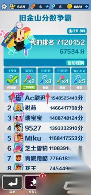 2、我们可以参与挑战,跑到相应的分数即可领取对应的钥匙奖励了。