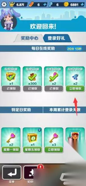 2、我们可以看到每日在线20分钟即可领取钥匙串,是我们获取钥匙的最大来源。