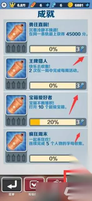 2、我们进入成就页面,完成成就后即可领取钥匙。