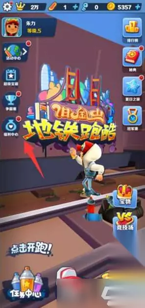 地铁跑酷如何获得钥匙 答:可以通过完成成就、每日奖励、参与争霸赛来获取免费的钥匙 一:完成成就 1、进入游戏中,点击左下角的任务中心。