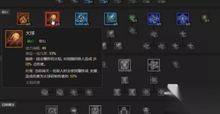 然后13级点出“多头蛇”和“强化多头蛇”,这时候就到了15级,去做附魔任务,主要附魔的技能还是火球术,清怪最快的还是这个技能。之后18级19级20级可以点出核心天赋“火墙”、“强化火墙”、“法师火墙”。这时候火墙就成了主要输出技能,可以多使用了。