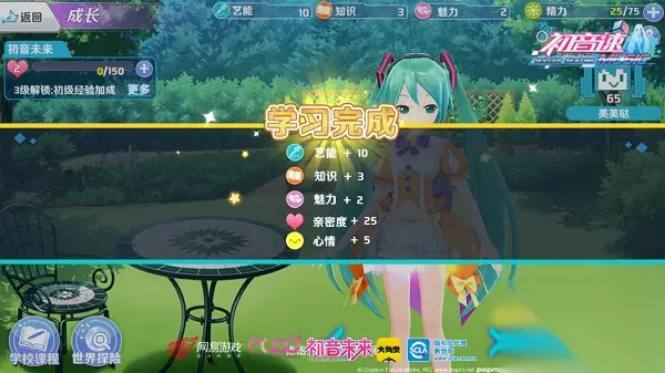 在课程学习中,初音未来除了能够获得属性与亲密度的提升外,心情也会进一步的提升。初音的心情越好,就能够拥有极大的几率触发聊天,聊天后会有意外物品惊喜奖励哟。