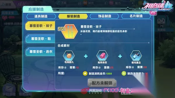 亲手制造的乐趣之应援制造 玩家点击右下角的“应援制造”即可进入。在应援制造中,玩家可以通过应用在世界探险中获得的材料制作出各种道具、服装、诗品、名片等。应援制造同样会消耗金币和精力。美美的服装和强力道具都可以自己亲手制造出来哦,还不快来试试!