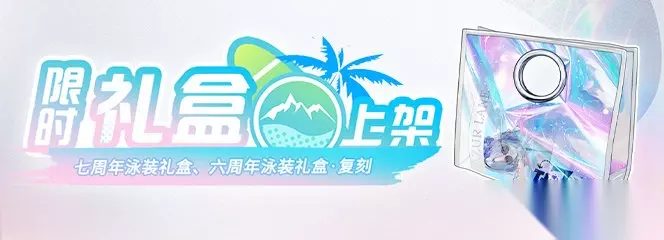 6.换装商店限时上架以下换装【5月21日维护后~5月26日23:59】: ◆全新上架◆ 阿尔萨斯-「盛夏的圣迹」【Live2D】 莫加多尔-「静谧一隅的燥热」【Live2D】 圣路易斯-「邮轮上的诱人午后」【Live2D】 埃玛-「引路的双轨极星」【特殊动态立绘】 滨江-「奢享于盛夏之滨」【动态立绘】 布伦努斯-「夜幕下的演奏者」 花剑-「幸运之夜」 重剑-「角落的小小骑士」 ◆重返上架◆ 2023年12月31日以前上架过的部分换装。 7.商店限时上架以下优惠礼包【5月21日维护后~6月12日23:59】: 「七周年泳装礼盒」【售价¥198,上架期间可购买1次】 购买后可随机获得以下一件角色换装及钻石x2024、心智魔方x20、高级定向蓝图·六期x2、快速完成工具x10、家具币x100、心智单元x50的丰富奖励。 ※「七周年泳装礼盒」可获得角色换装及对应概率如下: 阿尔萨斯-「盛夏的圣迹」【Live2D】10% 莫加多尔-「静谧一隅的燥热」【Live2D】10% 圣路易斯-「邮轮上的诱人午后」【Live2D】10% 埃玛-「引路的双轨极星」【特殊动态立绘】10% 滨江-「奢享于盛夏之滨」【动态立绘】10% 布伦努斯-「夜幕下的演奏者」18% 花剑-「幸运之夜」16% 重剑-「角落的小小骑士」16% ※购买后礼盒内容将发送至邮箱,重复获得已拥有的换装将自动置换成等价的钻石; ※以上换装将在换装商店限时上架至5月26日23:59;