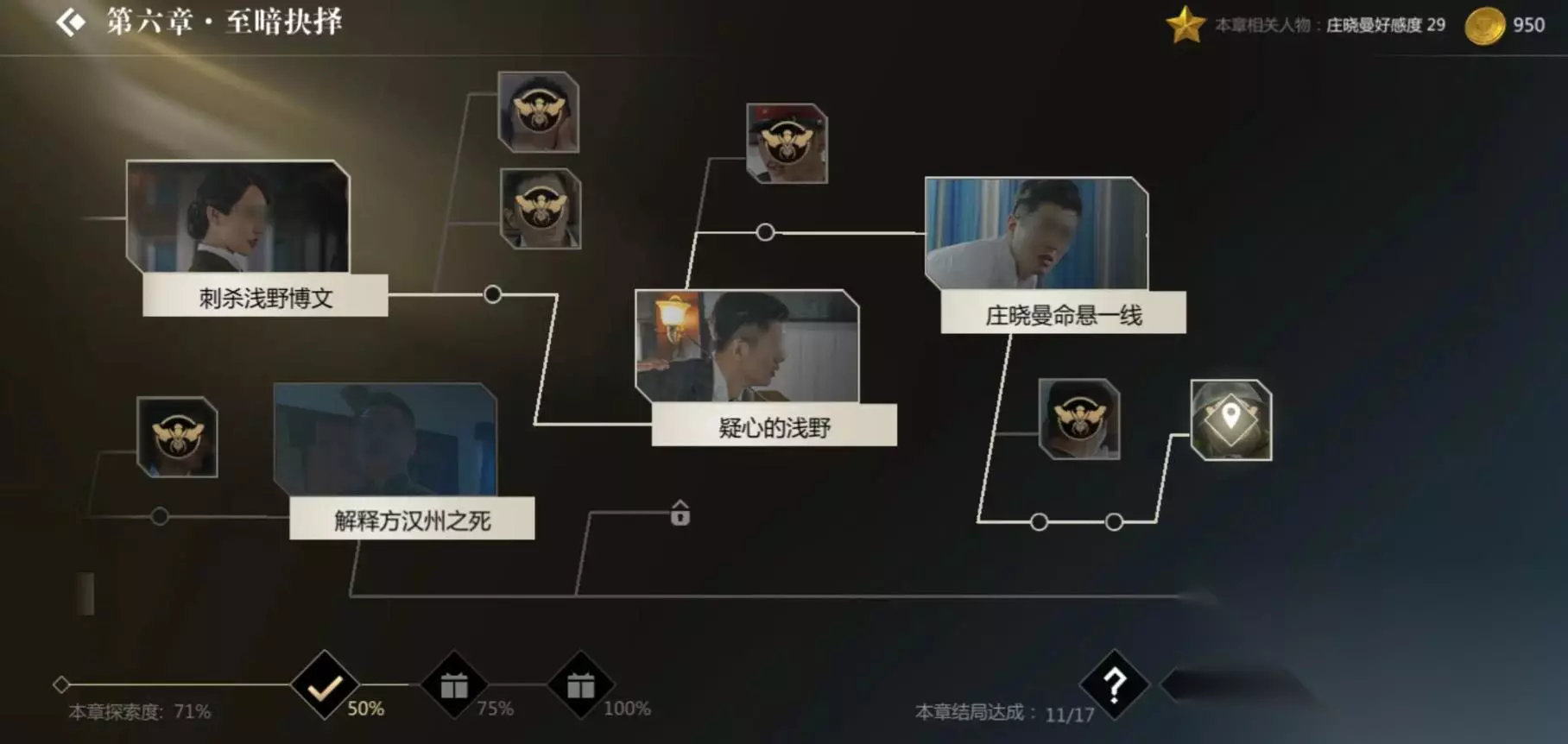 上面这些便是隐形守护者庄晓曼不死结局的达成条件。这几个选项每一个玩家们都不可以选错,因为一旦有一个选择错误的话,那么我们就无法在第七章达成庄晓曼存活的结局。