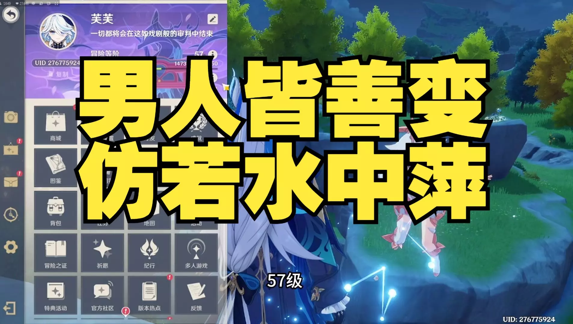 这是RPG游戏《原神》的账号内容,展示了阿贝多满命之座,还有夜兰、魈、那维莱特等角色的配置,该顶级账号出现被融的情况。