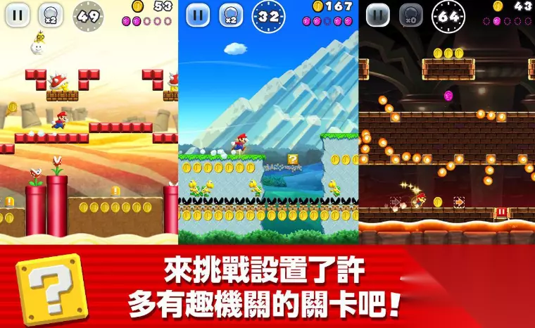 游戏里的马里奥会一直向前冲,大家只需要专心的按着屏幕让马里奥跳就可以了,遇到障碍手指一动,马里奥就可以高高的蹦起躲起来,路上那些金币大家千万不要错过,赶快收集起来。这款游戏的模式特别多,就说世界巡回模式,它可以带大家跑遍各种特色的关卡,每一个场景都会给大家带来不一样的惊喜,大家快来挑战一下,看看自己能够跑多远,能够收集到多少金币。 高速下载 普通下载 4、《神庙逃亡》
