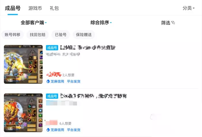 我们在交易猫中搜索游戏名称就可以看到很多游戏相关的商品,在商品的详情页中可以看到账号中包含的游戏等级、游戏的英雄数量、账号中拥有的皮肤数量以及段位信息等情况,通过这些信息我们就能够判断是否符合我们的需求。通过官方验号服务还能够对张账号信息进行验证,防止虚假宣传的情况发生。