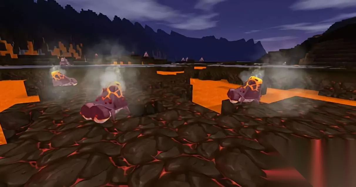 二、火山地形以及新生物讲解 玩家们在火山地形的话,将可以看到主火山、火山山脉、火山平原、岩浆痕、岩浆网等新地形生态,同时爆爆蛋、干岩巨人、地心人也会在新地形呈现。 更生物方面,玩家们在火山地形将会碰到焱焱蟹,这是一种中立生物,被迫冲击能够被顺从,含有免疫岩浆以及焚烧buff,在给它装上鞍之后还能够变成坐骑,击杀的话则能够获得焱焱蟹背壳。