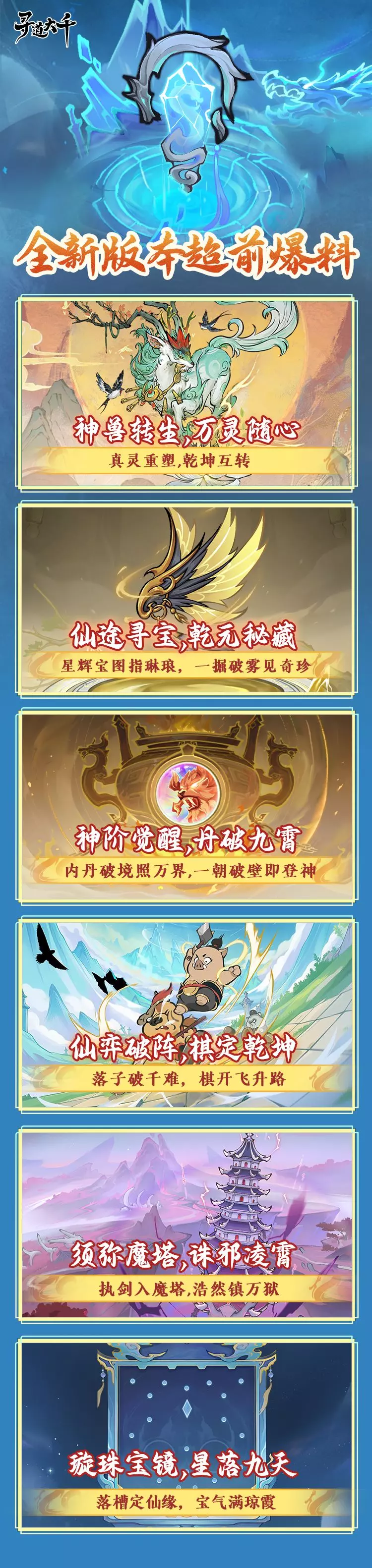 全新版本即将上线,道友将步仙途寻宝,拾一境机缘;深入魔塔,登阶诛邪!还有全新休闲小游戏即将惊喜开启……