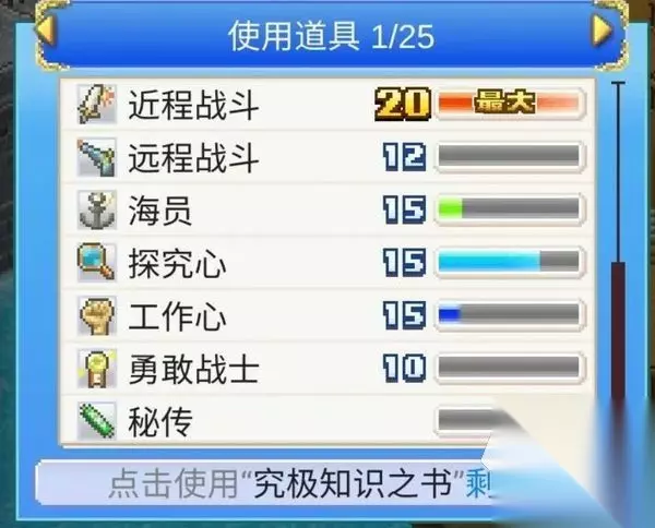 水手:转职需求需要近达到1,最高等级为15,HP值为F,SP值为F,攻击为F,防御为E,速度为E,智力为D。 海贼:转职需求需要勇达到1,最高等级为20,HP值为E,SP值为E,攻击为D,防御为E,速度为D,智力为E。 武道家:转职需求需要近达到2和船达到2,以及1颗星,最高等级为30,HP值为E,SP值为D,攻击为D,防御为D,速度为B,智力为C。 厨师:转职需求需要探达到1,最高等级为15,HP值为F,SP值为F,攻击为F,防御为F,速度为F,智力为C。 农民:转职需求需要工达到1,最高等级为15,HP值为F,SP值为F,攻击为E,防御为E,速度为E,智力为C。
