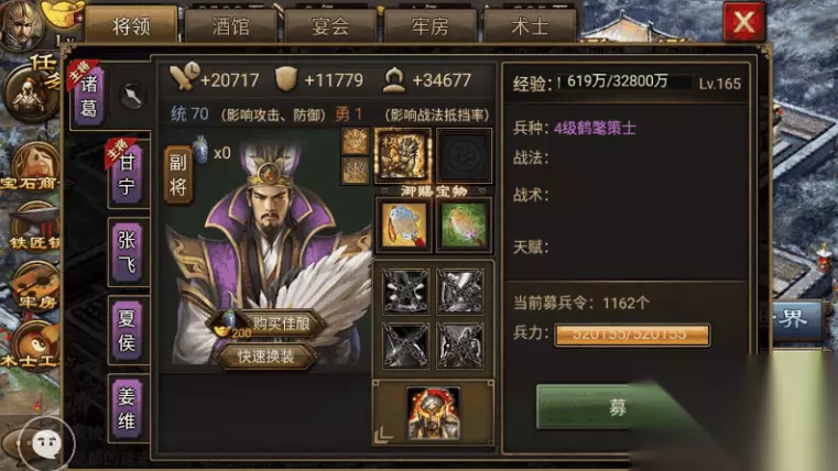 参与史诗之路前,武将培养是核心准备工作。建议优先培养刘备、黄忠这类T0级别主力武将,他们的输出和生存能力都很强。关羽、诸葛亮也是不错的选择,能抗能打还能辅助队友。遇到山地地形时,赵云或孙策的地形适应性更佳。装备和御宝的检查必不可少,御宝栏需完成171级主线任务才能开启,开启后建议优先刷图纸打造青铜剑。装备洗炼方面,不建议在低级红装上浪费金币,应留到后期再投入。