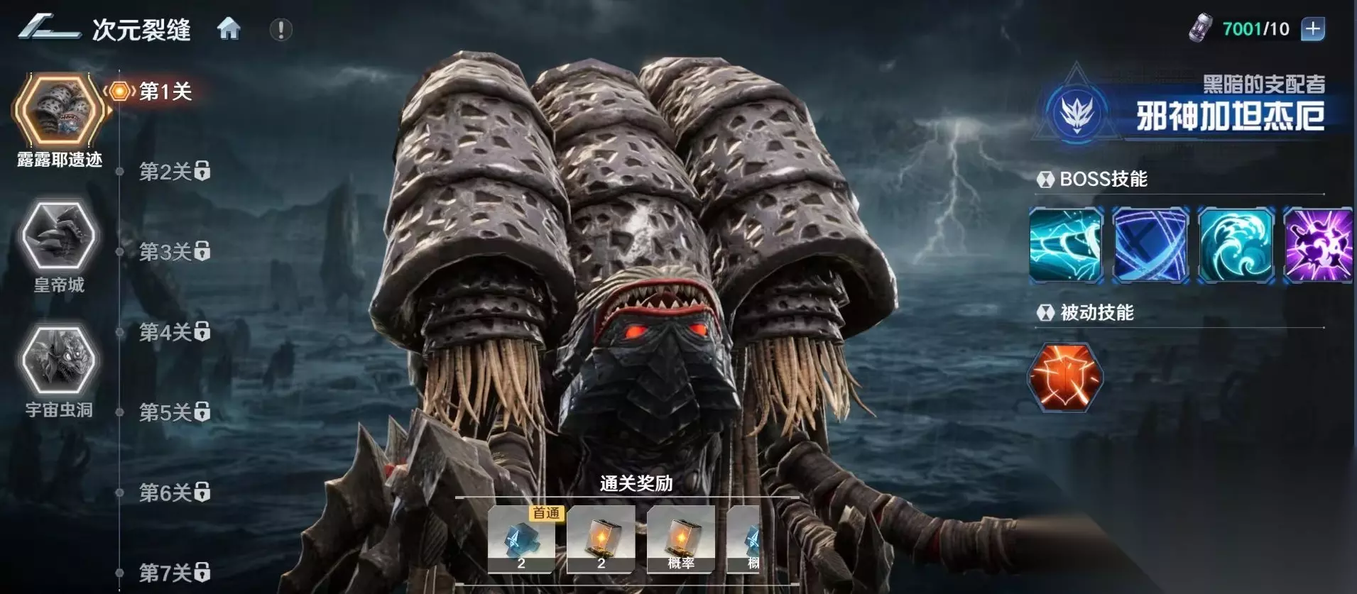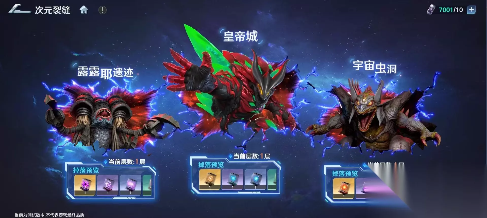 这项活动需要玩家等级达到25级以上才能开放,在活动中可以挑战拥有不同机制的boss,根据玩家对当前boss造成的伤害结算奖励,大家可以在主页中点击宇宙港,在这里就可以直接进入次元裂缝的战斗了。裂缝中一共有三个副本,分别是露露耶遗迹,皇帝城和宇宙虫洞,分别对应着不同的背景和boss。玩家可以任意选择一个副本进入。只要击败这些副本中的boss,就可以获得对应的角色潜力养成等道具。