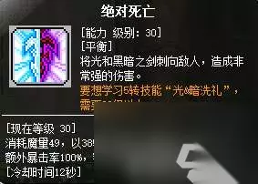 绝对死亡技能样式和黑骑的神枪降临也有几分类似 前期升级,夜光法师需要两个技能轮动: 1转耀眼光球(光)、黑暗降临(暗):