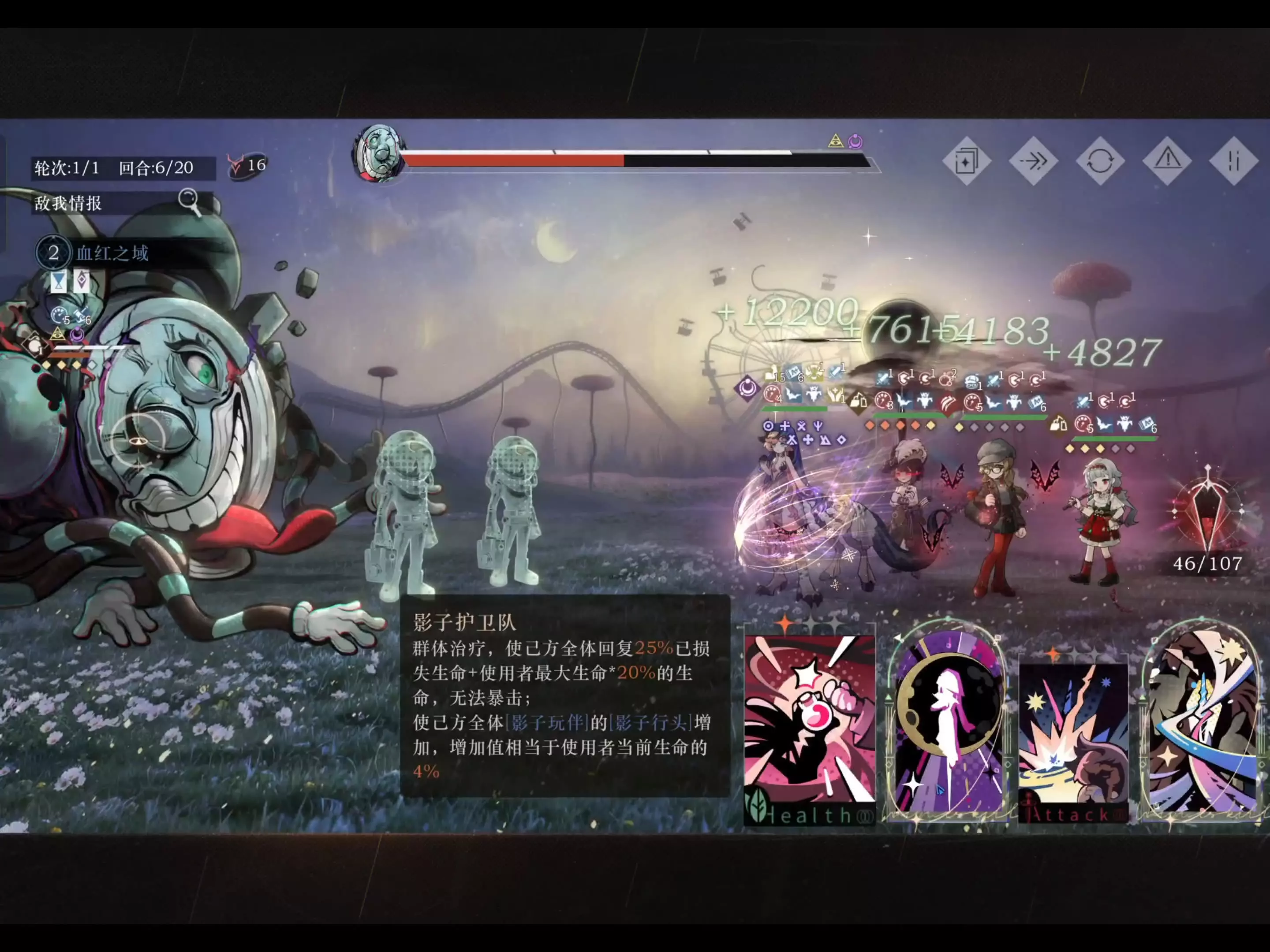 新手玩家首次尝试游戏中的薪血队(梅子堡队),在“血红之域”活动关卡挑战高血量boss时,发现队伍输出低,打了多回合boss血量仍居高不下,疑惑该队伍的玩法及强度,求助玩法思路。