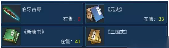 【伯牙古琴】 作用:好友上限数量增加一个(就是好友列表满了,可以增加一个) 获得:消耗500情义值在【情义值商店】兑换所得。 【元史】 作用:人物角色所有属性加点1。 获得:1.参加【比武大会】满2点自动兑换,每个角色只能吃4本。 2.可在易市购买。 【新唐书】 作用:人物角色所有属性加点1。 获得:1.参加【比武大会】满3点自动兑换,每个角色只能吃5本。 2.可在易市购买。 【三国志】 作用:人物角色所有属性加点1。 获得:1.参加【比武大会】满5点自动兑换,每个角色只能吃6本。 2.可在易市购买。