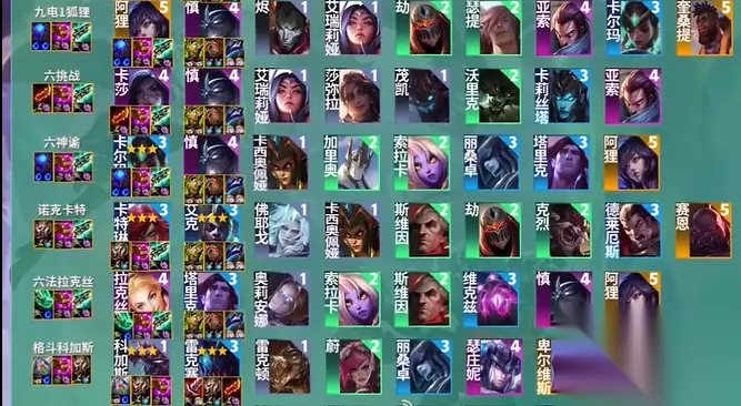 1.佛耶戈、格温、大树、劫、卡特琳娜、艾克、泽丽、塞纳、亚托克斯 2.阿狸、慎、烬、艾瑞莉娅、劫、瑟提、亚索、卡尔玛、奎桑提 3.卡莎、慎、艾瑞莉娅、莎弥拉、大树、狼人、卡莉斯塔、亚索 4.卡尔玛、慎、卡西奥佩娅、加里奥、索拉卡、丽桑卓、塔里克、阿狸 5.卡特琳娜、艾克、佛耶戈、卡西奥佩娅、斯维因、劫、克烈、德莱厄斯、塞恩 每个赛季都是有强势的英雄和强势的羁绊,如果能搭配好,并且选择合适的海克斯蕲强化,都可以提高我们的阵容上限,另外阵容之间的运营也是很重要的,如果大家喜欢的话一定要尝试着去安排,都去尝试一些其他的阵容搭配,s9的话是比较吃国家羁绊的,也就是各个阵营间的羁绊,大家可以多去了解一下! 小编总结 每一个赛季都有着不同的将士的英雄和不同将士的属性,如果搭配好的话,能够激发出阵容中的强度以上,这5个阵容算是游戏在新赛季中会加强的阵容之一,你可以去游戏中尝试一下。