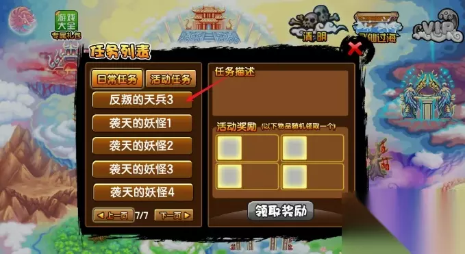 2、在第4~6关击败天兵(斧)和天兵(弓)各50个。