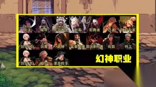 【六】幻神职业 “男漫游、暗刃、剑宗(太刀)、特工、街霸、异端、蓝拳、武神、剑魔(CP)、剑宗(短剑)、女弹药、忍者、影舞、刺客、死灵(白猫冰晶)、暗帝(CP)、风法(CP白猫)”,进入幻神领域。