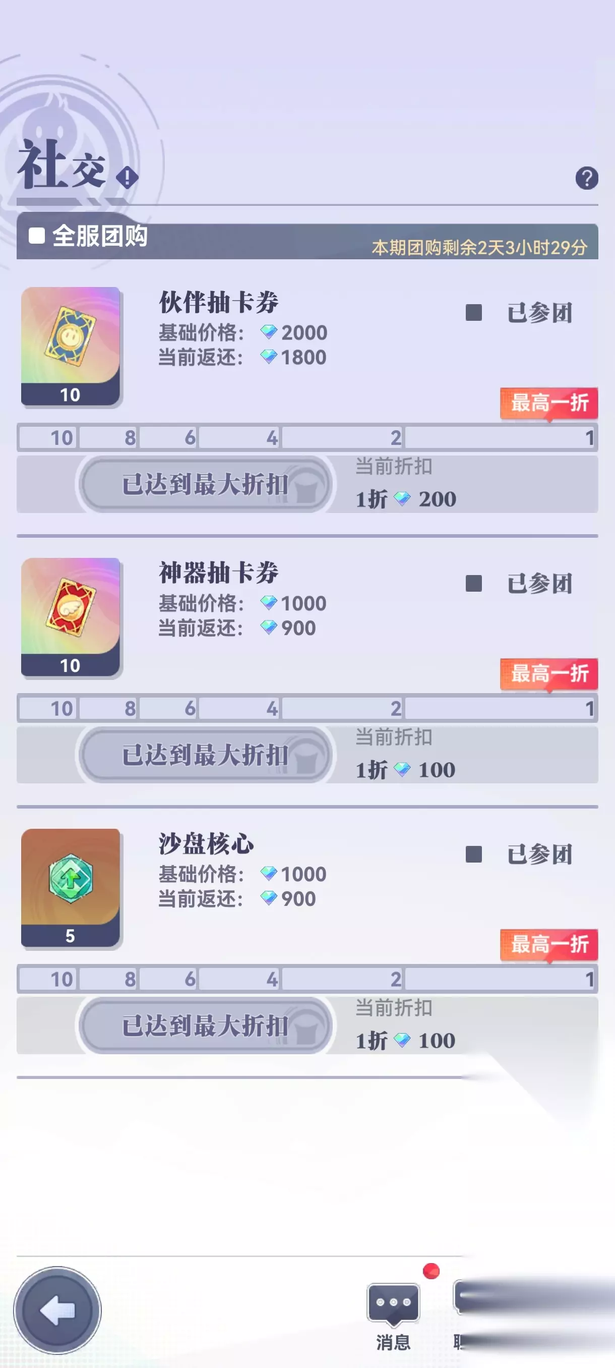 5.每周全服团购和单人集册奖励注意购买和领取,集册不要氪金买高级集册很亏没什么收益。(集册升级靠个人进去退出副本-无尽模式来获得经验奖励)