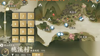 摄魂圣伞获取攻略 1、首先我们在桃溪村打开地图,输入位置坐标【964.1603】,如上图所示;