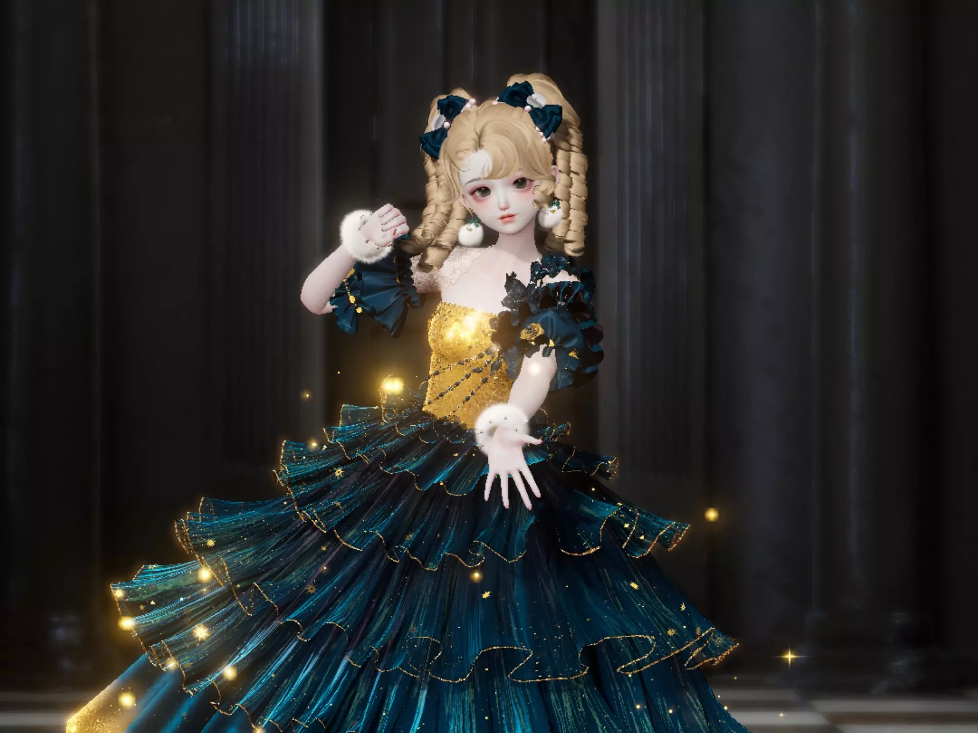 这是游戏《以闪亮之名》的相关分享,展示了游戏中一款设计精致的礼服,礼服带有梦幻的光影效果,搭配氛围感十足的场景,尽显华丽质感。