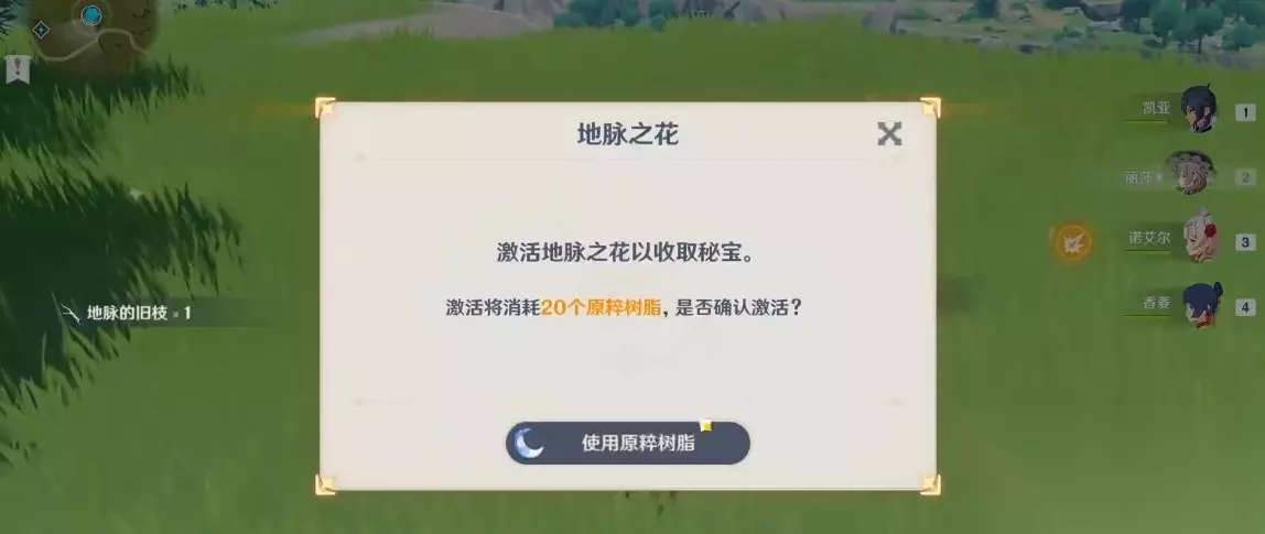 当玩家击败所有的敌人后,在原来地脉溢口的位置就会出现地脉之花。玩家靠近地脉之花后,就会出现接触地脉之花的提示。