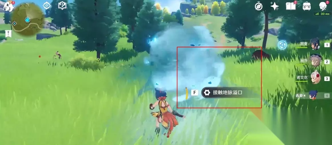 玩家到达地脉之花所在的位置后,接近地脉之花就会出现接触地脉溢口的提示。